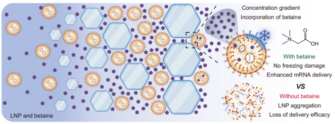Cheng X, Zheng X, Tao K, et al. Freezing induced incorporation of betaine in lipid nanoparticles enhances mRNA delivery. Nature Communications. 2025;16(1):4700.