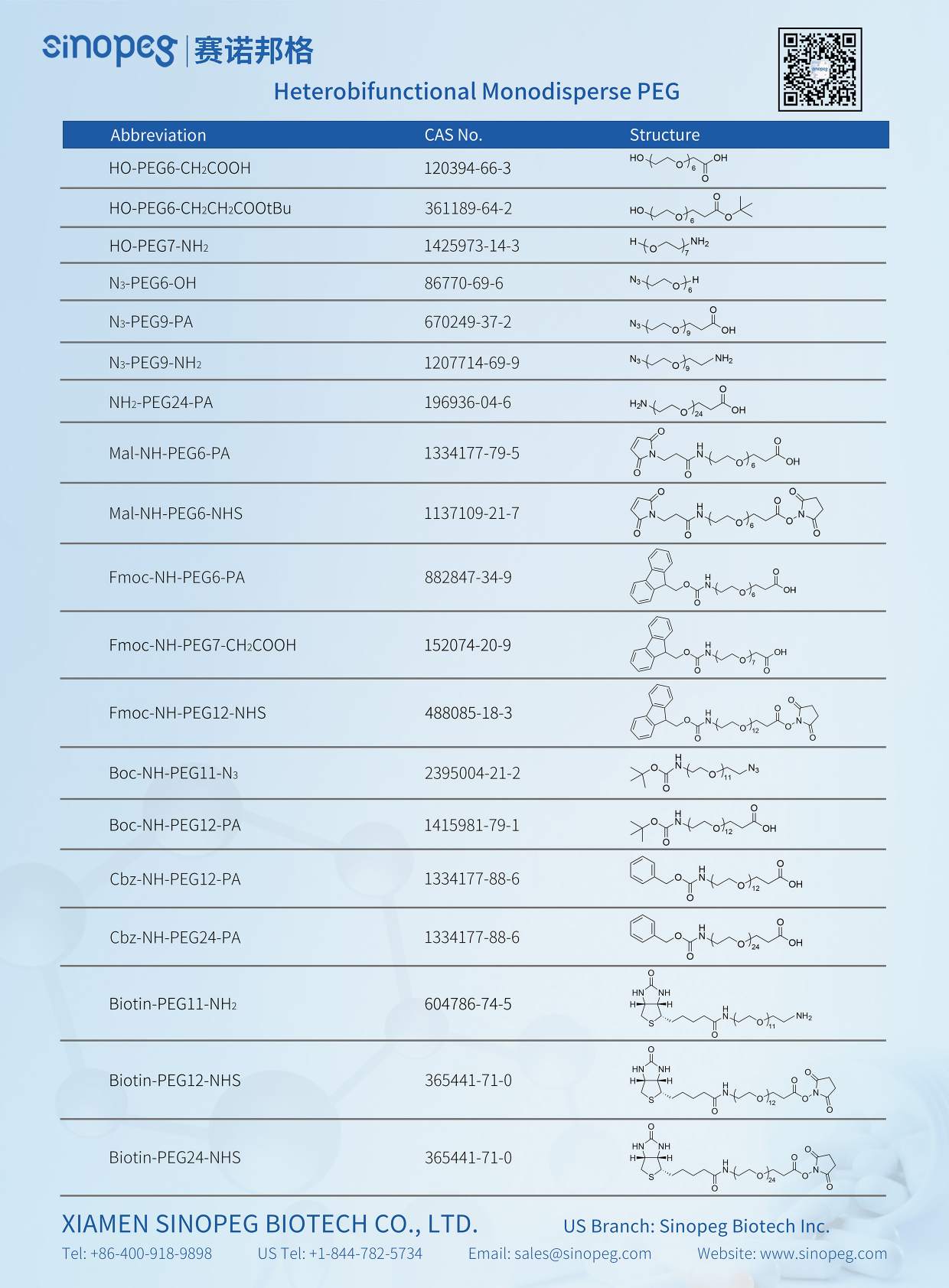 Sinopeg dispose d'un vaste stock de PEG à petites molécules (offrant une variété d'options de groupes fonctionnels).